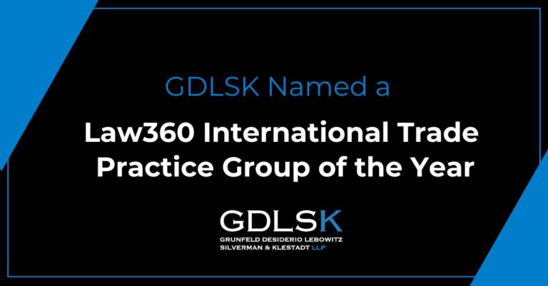 For the second year in a row, Grunfeld, Desiderio, Lebowitz, Silverman & Klestadt LLP has been named a Practice Group of the Year for International Trade by Law360. The annual award honors the firms behind the wins that resonated throughout the legal industry over the past year.