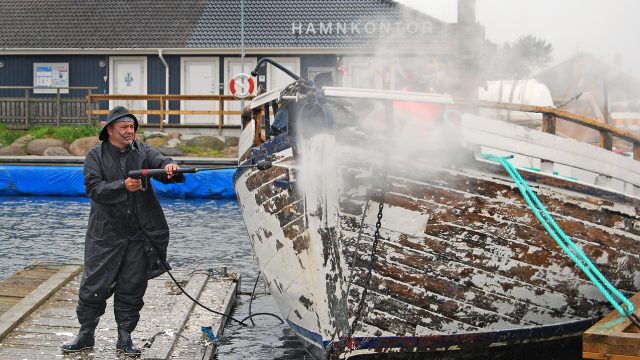 Cold water gas-powered pressure washers are easily distinguishable from hot water gas-powered pressure washers and have different physical characteristics. While a hot water pressure washer also includes an engine and a pump, it must also include a boiler to heat the water as it leaves the pump. The boiler also includes a heating coil. The boiler needs a separate energy source such as natural gas, butane, propane, kerosene or diesel fuel. In addition, it needs a burner system to ignite the boiler. Hot water pressure washers are generally larger in size than cold water pressure washers due to the need for the boiler. The scope does not include hot water gas-powered pressure washers.